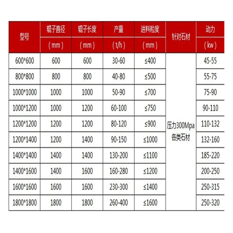【进料粒度】:1020mm 【出料粒度】:150-300mm 【生产能力】:425-725t/h 【适用物料】:鹅卵石,玄武岩,花岗岩,石灰石,铁矿石,河石。