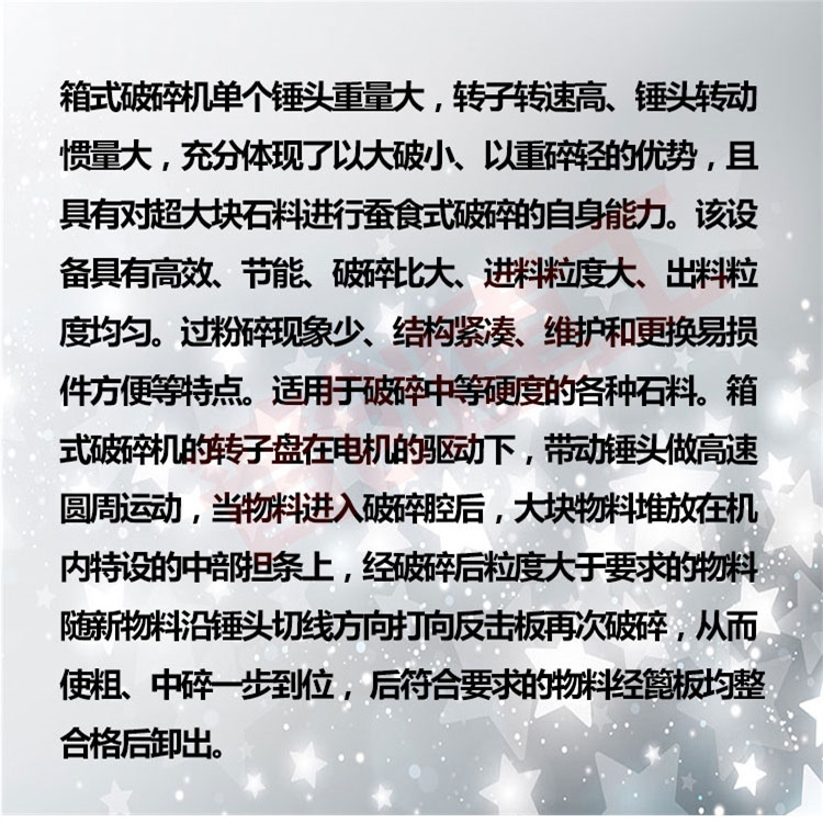 [动力]:250-320kw [进料粒度]:≤1600mm [产量]:260-400t/h [适用物料]石灰石、花岗岩、玄武岩、辉绿岩、安山岩、矿石尾矿、建筑垃圾等。