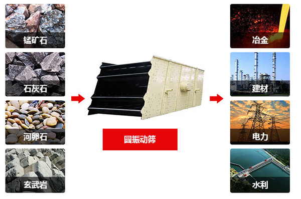 圆振动筛做圆形运动,是一种多层数、高效新型振动筛。圆振动筛采用筒体式偏心轴激振器及偏块调节振幅,物料筛淌线长,筛分规格多,具有结构可靠、激振力强、筛分效率高、振动噪音小、坚固耐用、维修方便、使用安全等特点,该振动筛广泛应用于矿山、建材、交通、能源、化工等行业的产品分级。