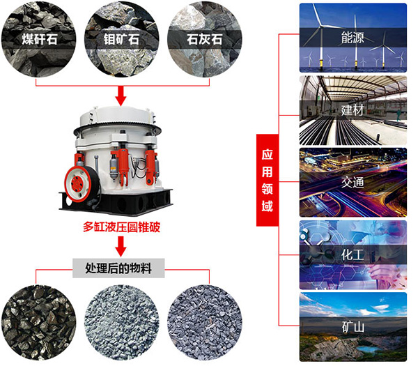 多缸圆锥破碎机是我公司自主研发的适合于破碎高硬度物料的产品,且对产品粒形要求严格的新型圆锥破碎机,该机比传统弹簧圆锥破碎机性能更优越。采用全液压保护和调整装置,节省人工和时间。破碎成品具有极其优质的立方体型,操作稳定可靠,其在世界各地享有盛名,是当今矿山建筑行业替代弹簧圆锥破碎机和更新一般液压圆锥破碎机的新一代产品。