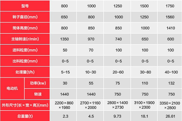 该设备破碎比大,破碎水份含量高,对水份含量高的物料加工 为理想,出料粒度可任意调节,无筛条设置,含泥沙量大的物料不会堵塞,不可破碎物进入机体可自动排除,不会造成设备的损坏。该设备粉碎物料直流,生产效率高、结构独特、运转平稳、噪音低、维修方便,开启工作仓门即可轻松更换易损件。