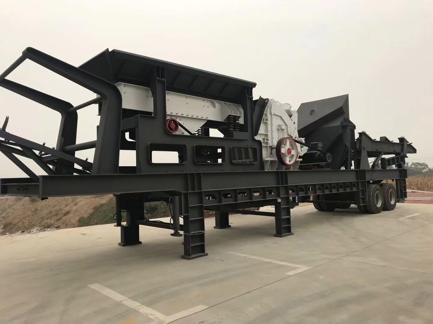 移动式破碎筛分站品种齐全,规格系列化,移动式破碎筛分站选择余地大,能满足广大用户的需要,企业可提供轮胎(半挂车)移动式破碎站成套设备,安装方面具有较大的灵活性,从粗破到细破都较为有效。我公司现行所提供的移动式破碎机、反击式破碎机、圆锥破碎机、振动筛分设备均可量身配套制作。